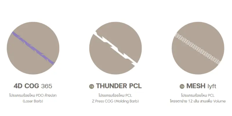 เราใช้ไหมละลาย PDO (Polydioxanone) หรือ PCL (Polycaprolactone) ที่ผ่านการรับรอง อย. ไทย มีคุณสมบัติช่วยยกกระชับและกระตุ้นคอลลาเจน ร่วมกับเทคนิคการร้อยไหมแบบ Vector Lift เพื่อผลลัพธ์ที่แม่นยำและเป็นธรรมชาติ